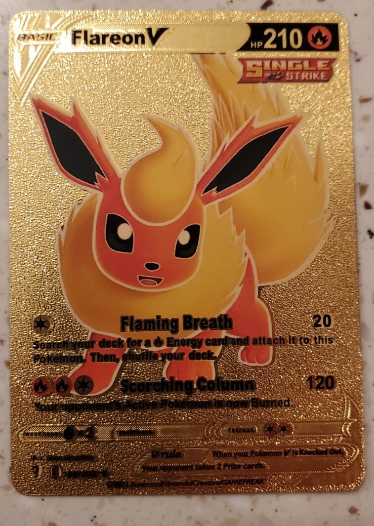 . Result Gold Pokemon Flareon V 169203 Single Strike. When your Pokémon V is Knocked Out your opponent. Result Pokémon Flareon V Pokemon Gold Foil Card 169203 HP210 Single Strike 101..